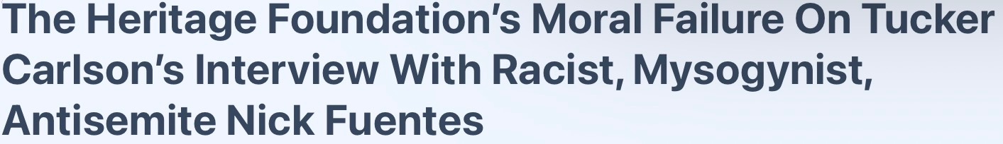 CIt’s painful to put a major conservative institution in the loser column, but this one is unavoidable. When its president publicly defended Tucker Carlson for platforming a misogynistic, antisemitic racist, the organization crossed a moral line. Then came a half-hearted, not-really apology that dodged accountability rather than confronting the damage done. For a group that prides itself on principle, the episode exposed a stunning lapse in judgment — and a betrayal of the values it claims to advance.