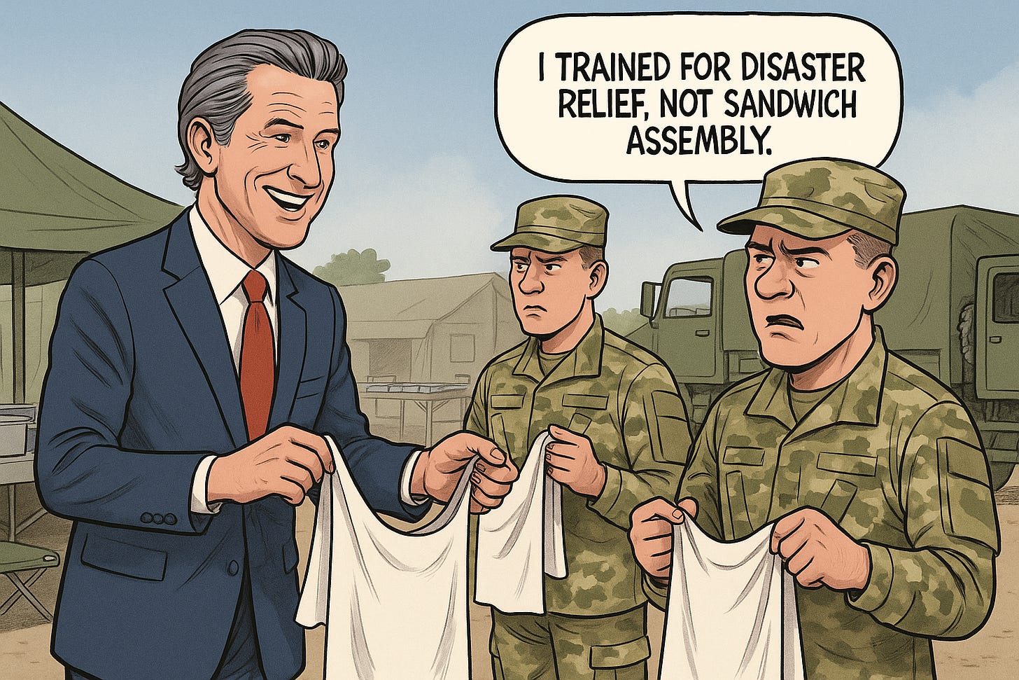 Instead of deploying the National Guard for emergencies or public safety, he announced they’ll help distribute food benefits during a potential federal shutdown. Using military personnel for charity work might make for good headlines, but it’s far from their core mission. Californians expect leadership that strengthens institutions—not one that treats the Guard like a political prop or volunteer workforce.