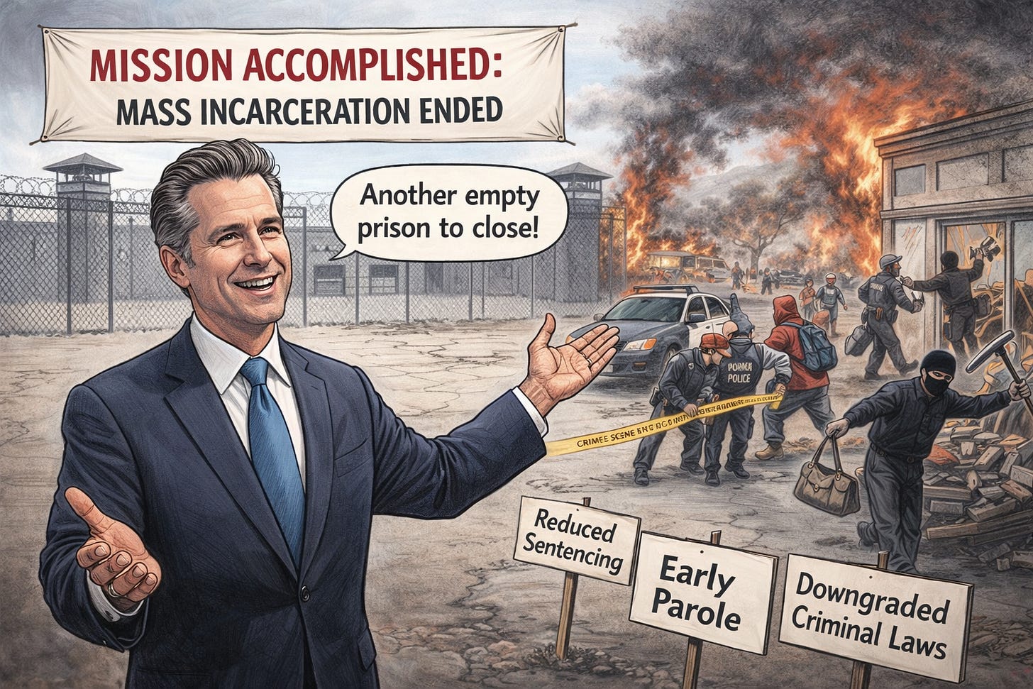 California’s political leadership has spent years rewriting criminal justice laws to reduce sentences, expand early release, and shrink the prison population—and now they’re getting exactly what those policies produce: empty prisons and calls to shut down even more. The state is incarcerating roughly 70,000 fewer people than in 2010, enabling at least five prison closures with another potentially on the chopping block. This isn’t an accident—it’s the direct result of policy choices that prioritize decarceration over deterrence, weakening the system’s ability to hold criminals accountable and protect the public. Now they want to close another prison.