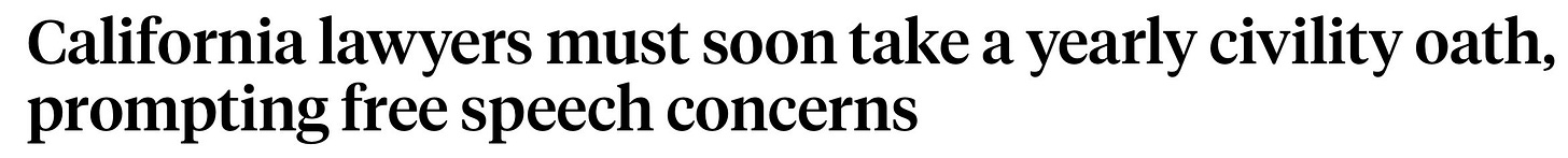 Forcing 286,000 attorneys to swear an annual “civility” oath sounds harmless—until you realize it’s a vague, subjective standard tied to professional licensing. That’s where it collides directly with the First Amendment. The government cannot condition someone’s ability to practice their profession on compliance with an undefined speech code. “Civility” is not a legal standard—it’s a moving target, open to interpretation and abuse. The State Supreme Court already signaled the problem by refusing to attach discipline to it. This board pushed it anyway, creating a framework that invites viewpoint policing under the guise of professionalism.
