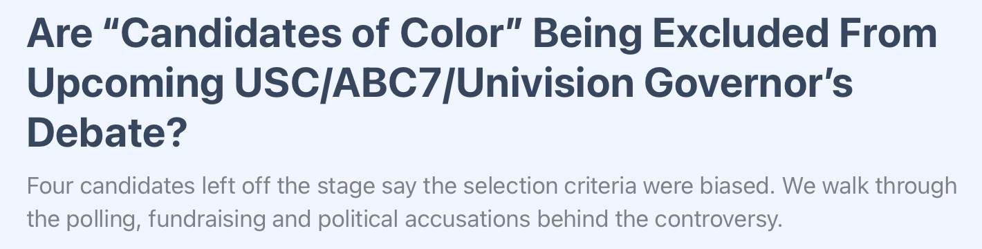 ⬇️ LOSERS: USC, ABC7, UNIVISION - HOSTS OF UPCOMING GUBERNATORIAL “WHITE CANDIDATE” DEBATE