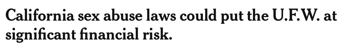 The United Farm Workers now faces serious legal and financial exposure tied to allegations of sexual abuse by its founder, Cesar Chavez. California’s expanded statutes of limitations open the door to lawsuits that could hold the organization liable if it knew—or should have known—about misconduct. For a union with relatively limited assets, even a wave of claims could be devastating. This is what happens when institutions elevate figures without accountability: the reputational damage is immediate, but the legal consequences can be far worse.