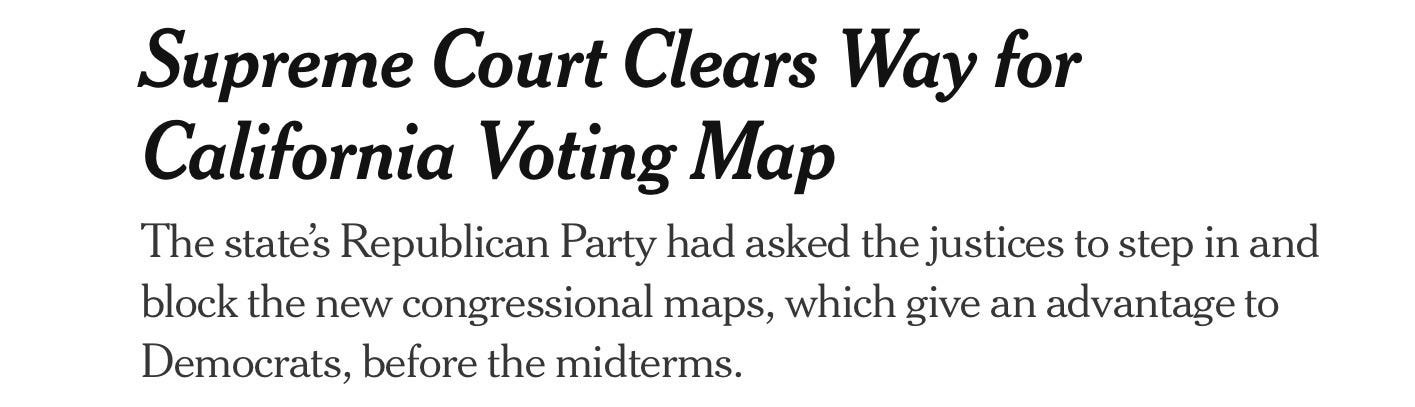 This week, they notched a courtroom win when the U.S. Supreme Court refused to issue an emergency order blocking the use of the Proposition 50 district lines for the 2026 elections. Like it or not, that ruling locks in the political map Democrats helped shape and gives their party a clearer runway heading into the next cycle. For incumbents and allies counting on those lines, stability is a strategic advantage, and avoiding legal upheaval this late in the process is a victory.