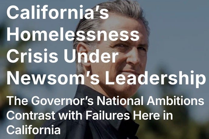 And then there is the complete debacle which is Gavin Newsom on the issue of the homeless — sorry, “housing challenged” here in California…